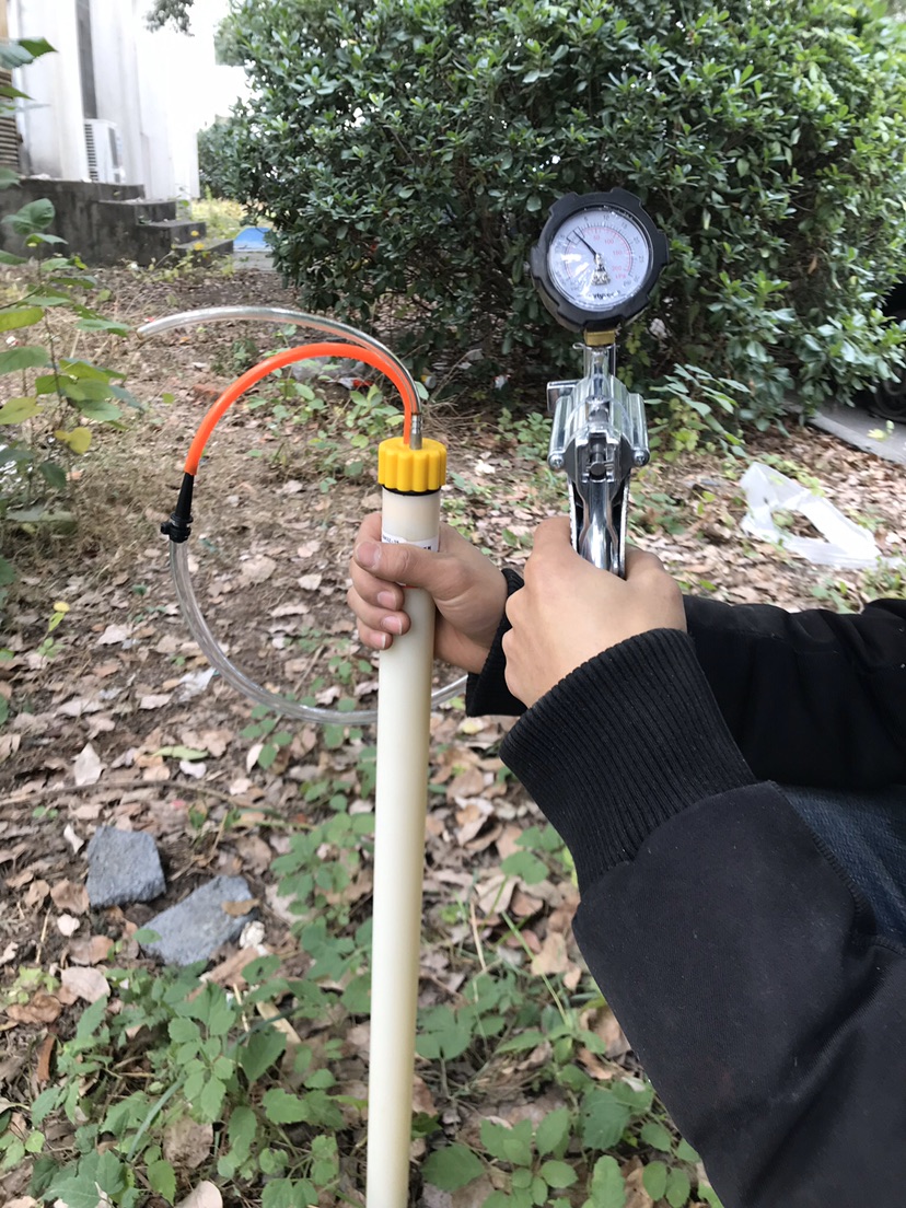 5.将手动气泵接口插入气压管端口,抽空取样管内气体*80-100Kpa。 用同样方法弯折气体橡胶管并用止气环封闭。取掉气泵接口,此时,取样器内保持负压状态。
